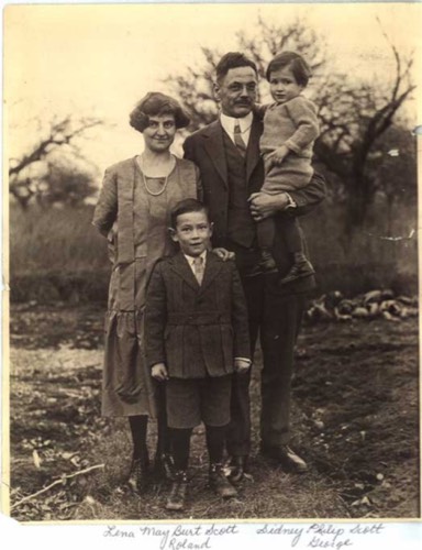 Front: brother Kenneth [he died young in a car crash and his face had been torn off the photo], Evelyn [a cousin on the Kilbank side?], sister Annie [Annie Eliza Burt Gage].