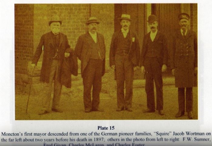 This photo from 1897 shows Fred in the centre when he was Alderman of Ward 1. [photo from Moncton Museum, reproduced in “New Voices of the Shores” by Professor Rainer L. Hempel]