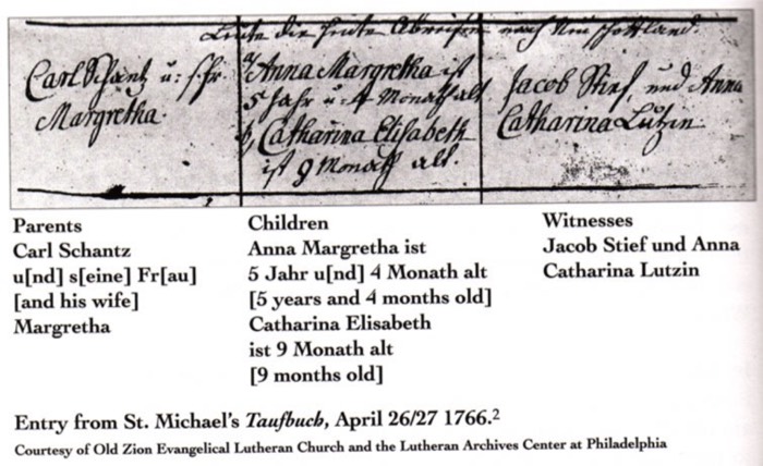 Anna Margretha Schantz’s baptismal record